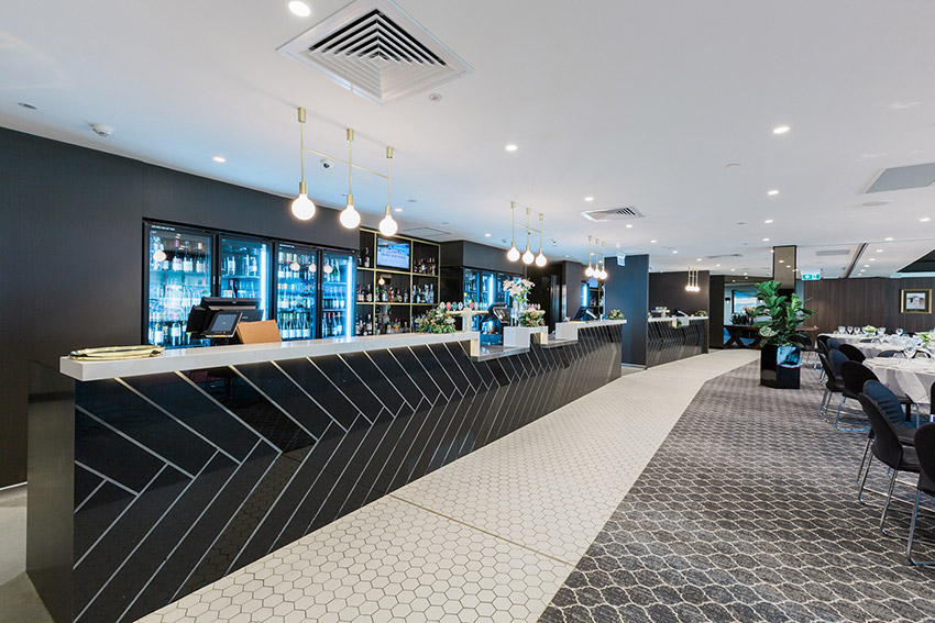 Secondly we undertook the major upgrade of the kitchen, cafe and preparation areas whilst also relocating the main switchboard from the centre of the old layout to the back of house enabling the main area to be opened up to maximise the stunning views of the legendary “Gabba” Brisbane Cricket Ground.
